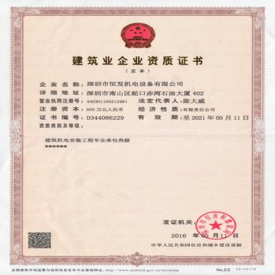 住建局機電安裝三級資質(zhì)許可證